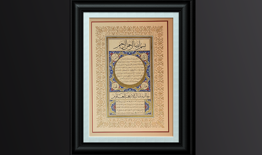 Hat: Fevzi Günüç Tezhib: Esra Eşin Tasarım: Esra Eşin Tarz: Rumi